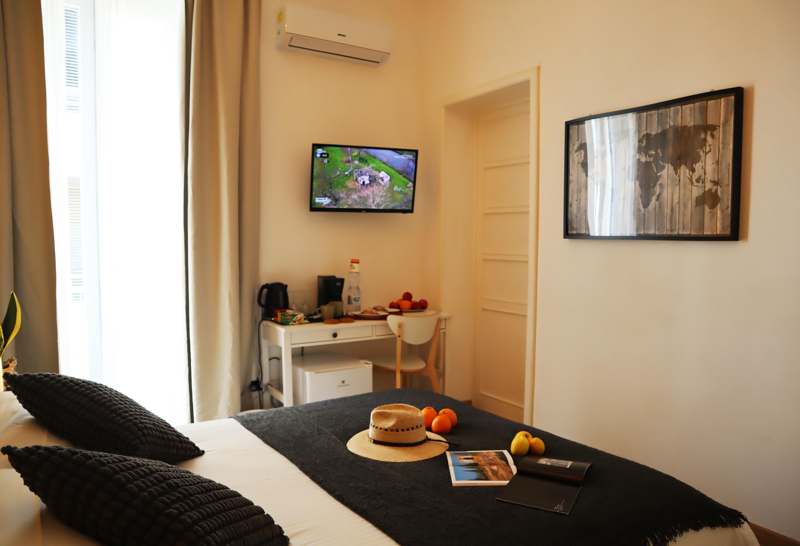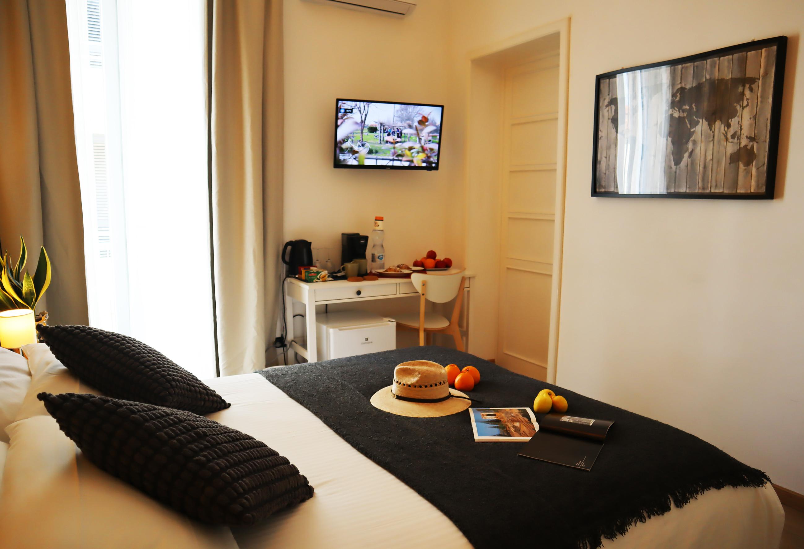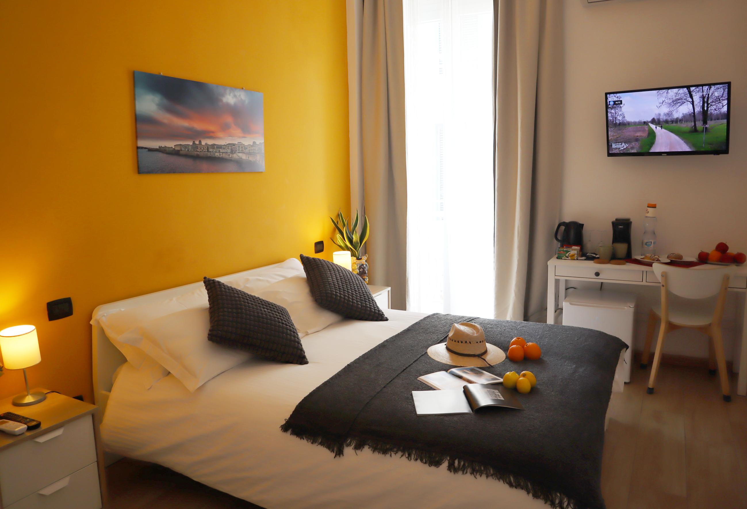 Ti aspetta un risveglio dolcissimo in questa luminosa camera con balcone privato, dove ogni dettaglio è pensato per il tuo benessere. Immagina di iniziare la giornata in totale relax con il profumo di un buon caffè Lavazza o una tazza di tè selezionato, pronti in un istante grazie alla macchina in camera e al bollitore a tua disposizione. Per il tuo massimo comfort, troverai un letto accogliente con quattro morbidi cuscini, una fresca bottiglia d'acqua di benvenuto e un bagno privato completo di tutto, dal bidet al set cortesia. Climatizzata e dotata di Wi-Fi veloce, la camera si trova a pochi minuti dal centro storico e offre la comodità del parcheggio gratuito proprio sotto casa.